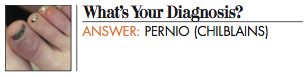 4. Parra SL, Wisco OJ. What is your diagnosis? Perniosis (chilblain). Cutis. 2009;84:27-29.