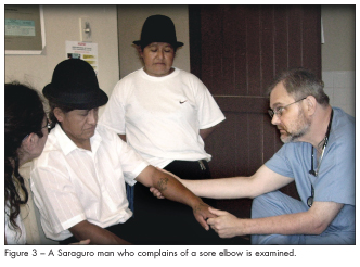 Outreach is done to even more isolated or underserved villages via mobile health fairs. One such “Jornada Medica” in occurred in October 2006. Three American physicians (including myself and two family physicians), a German dentist, an Ecuadorian translator, an American nurse, and a Colombian medical assistant traveled for 1 week. We visited a gold mining town high in the Andes and a remote village reachable only by horse deep in a valley. We ministered to 465 medical patients and gave adjuvant dental services, including extraction of 120 severely rotted teeth.