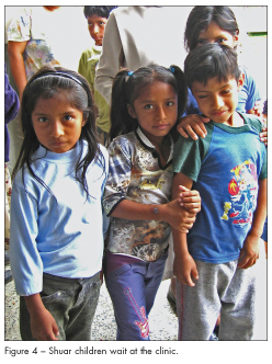 From the end of 2001 through 2009, this remote health center had more than 60,000 patient visits (Figures 2 and 3). People travel hours braving mudslides, driving storms, and rutted and perilous mountain roads to queue up eight in the morning and receive a “ficha” (see Figure 1). There may be extended families or even children alone (Figure 4). When specialists are present, they may wait up to 9 hours to be seen. Many are dressed in their finest traditional garments. They are invariably polite and grateful, even when their problems are intractable.