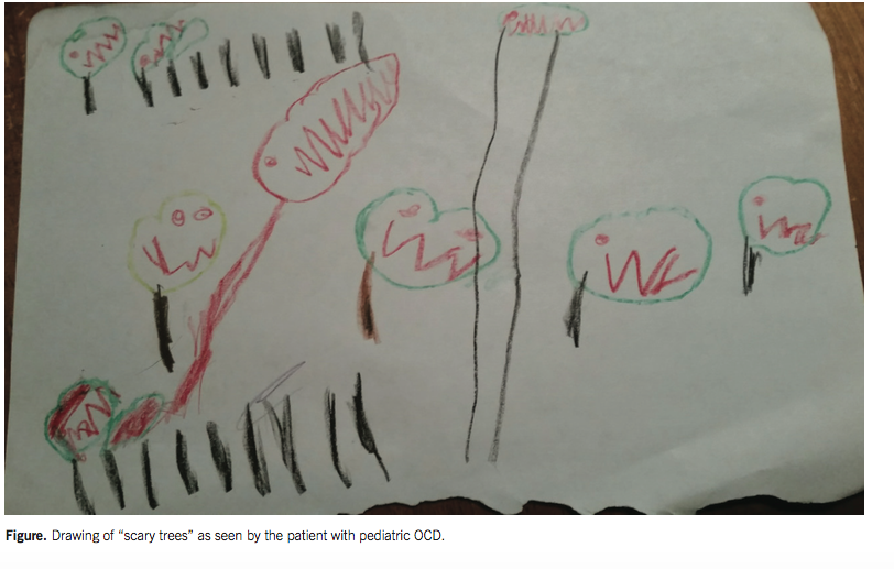 Based on the girl’s behavior and intrusive thoughts, the pediatrician diagnosed her as having obsessive-compulsive disorder (OCD). She was subsequently prescribed fluoxetine 5 mg daily and began psychotherapy. Hydroxyzine was continued briefly as needed at bedtime. Over the course of several weeks, she was able to gradually return to school and normal functioning.