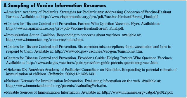 The safety and efficacy of vaccines need to be promoted right from the start. Many strategies for dealing with a parent who refuses vaccines are available and should be employed to maximize preschool immunization rates (Box).1