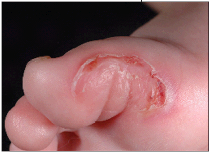 The clinical manifestations of these disorders vary from minor blisters to mutilating and even life-threatening blistering and scarring of the skin and other epithelial structures. In a newborn, it is often difficult to distinguish between the variants of EB without a skin biopsy; however, later in infan cy, the clinical presentation is usually sufficient to enable a clinician to be comfortable with the diagnosis.