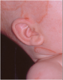 This cutaneous eruption develops in children younger than 6 months; it resolves by the time they are 6 or 7 months old. Unfortunately, NLE is associated with congenital heart block in approximately 10% of affected children.