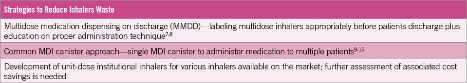 Another approach to resolving this problem includes the development of unit-dose institutional inhalers. However, at this time, only a limited number of unit-dose inhaler products are available on the market, and further assessment of the cost savings associated with this approach is warranted.