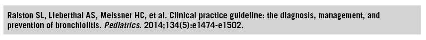 In November 2014, the American Academy of Pediatrics (AAP) published a revised clinical practice guideline on the diagnosis, management, and prevention of bronchiolitis.1 This guideline, which had last been updated in 2006,2 offers key action statements that indicate the level of evidence, the benefit-harm relationship, and the recommendation strength for measures against pediatric bronchiolitis.