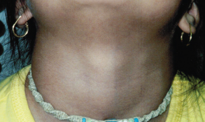 This 13-year-old girl first noticed a painless lump in her neck about a year earlier. Physical examination showed a smooth, nontender mass in the midline of the anterior neck, at the level of the hyoid bone. The mass moved with swallowing and on protrusion of the tongue. The thyroid gland was in the normal position.