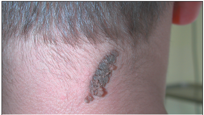Can you identify this asymptomatic lesion on the neck of a healthy 14-year-old boy?