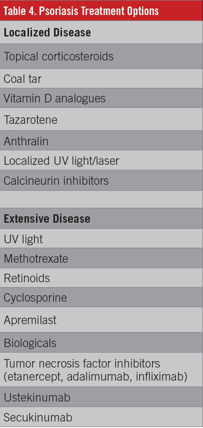 KEYWORDS: Psoriasis, primary care, corticosteroids, vitamin D analogues, retinoids, phototherapy, laser therapy, methotrexate, acitretin, apremilast, biologic therapies
