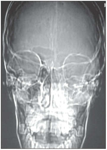 The area over the left maxillary sinus was tender. The neck was supple, with a mild left anterior adenopathy. Heart, lungs, and abdomen were normal. The patient was alert and oriented; no sensory loss was detected in the infraorbital or supraorbital areas.