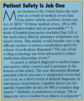 14. Kachalia A, Gandhi TK, Puopolo AL, et al. Missed and delayed diagnoses in the emergency department: a study of closed malpractice claims from 4 liability insurers. Ann Emerg Med. 2007;49: 196-205.