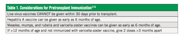 Vaccination Recommendations for Pediatric Transplant Patients
