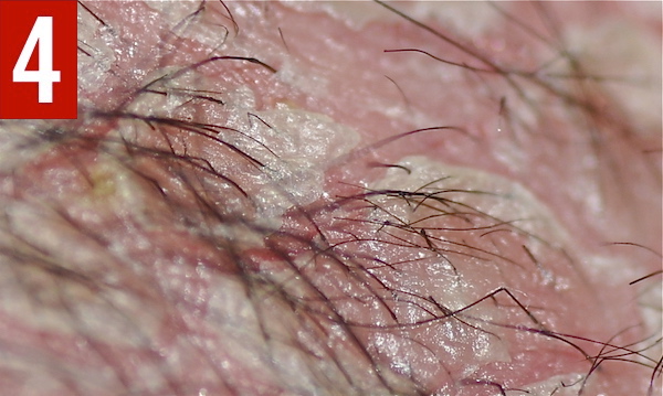 Figure 3. The neonate’s scalp was covered with thick, adherent, scaly plaques, and the hair was very short, brittle, and sparse.