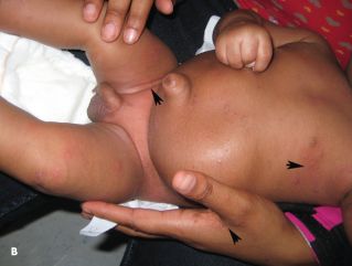 This baby and his mother were treated with permethrin 5% cream. They returned after a week with significant reduction in the rash and itching and were reassured that these symptoms would gradually resolve. ■