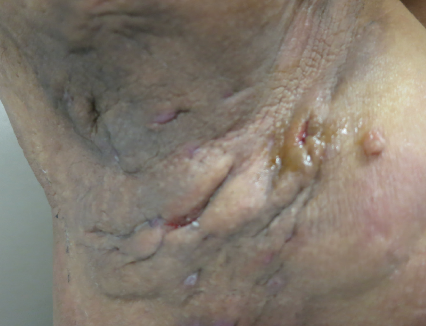 1. Hurley HJ. Axillary hyperhidrosis, apocrine bromhidrosis, hidradenitis suppurativa, and familial benign pemphigus: surgical approach. In: Roenigk RK, Roenigk HH Jr, eds. Roenigk and Roenigk’s Dermatologic Surgery: Principles and Practice. 2nd ed. New York, NY: Marcel Dekker; 1996:623-645.