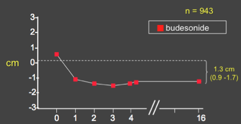 Note: While half an inch may not seem like a drastic loss to a treating practitioner, it is ultimately an individual decision whether that 1.3 cm difference is important (also recalling that the upper limit of growth retardation was 1.7 cm)