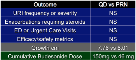 The researchers found that the frequency of exacerbations was essentially the same regardless of whether the children were taking ICSs daily or only when needed.