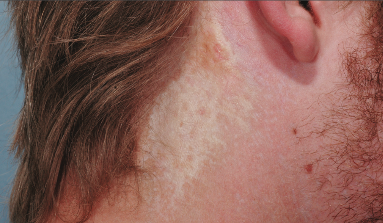 <p>This 17-year-old boy has had a thickening of his skin with hypopigmentation on the right side of his neck for the past 6 months. The area of thickening has slowly enlarged and is asymptomatic. The...