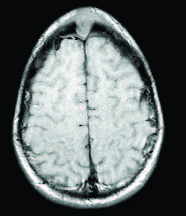 An 18-year-old male without a significant medical history presented with 2-day history of swelling of the forehead above the right eye.