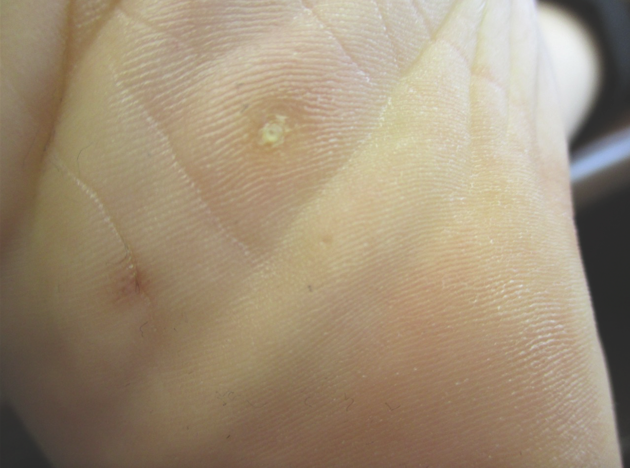 A 17-year-old male athlete presented with a painful lesion on his right sole of approximately 6 months’ duration.