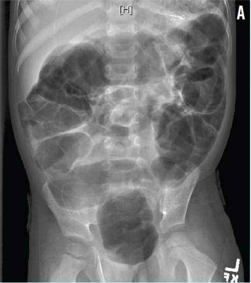 A 4-year-old boy was transferred to our hospital from another institution for abdominal distention of 1 day’s duration.