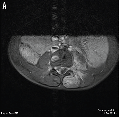 A 5-year-old previously well boy was referred to the emergency department after a week of intermittent fever along with progressive left back and leg pain and refusal to bear weight.