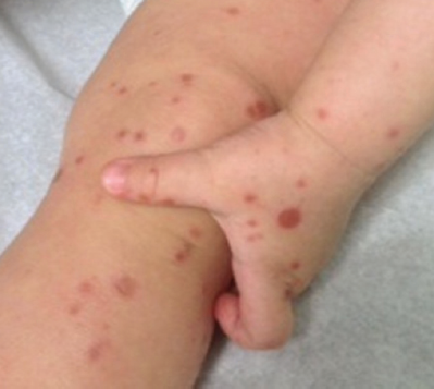 Desquamation of the palms and soles, such as that seen in the two infants’ cases described here, is a known but uncommon presentation of congenital syphilis.