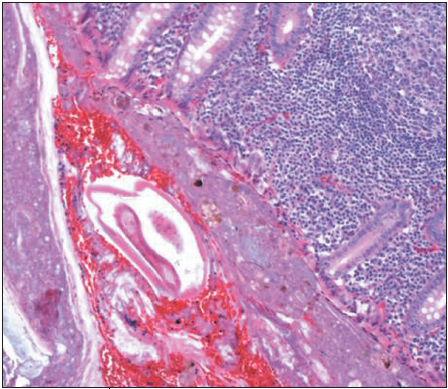 A 9-year-old girl was seen in the emergency department (ED) with a 5-day history of non-bilious, non-projectile emesis, decreased appetite, and persistent right lower quadrant pain following an appendectomy...