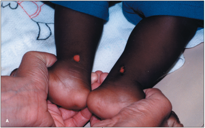 The mother of this 5-month-old infant was concerned about the lesions that appeared on her son's inner ankles after he had spent the day with his babysitter.