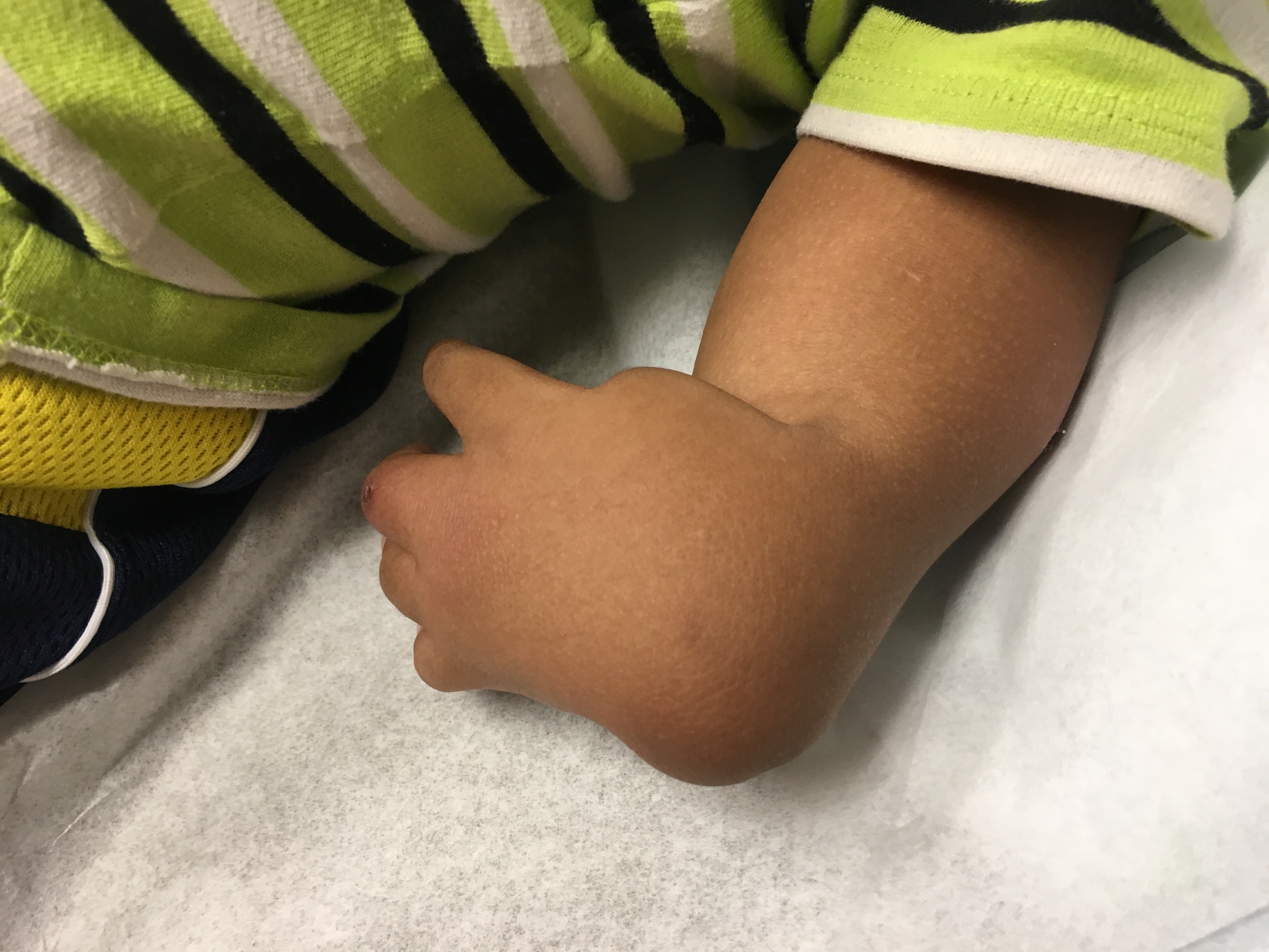 A 3-year-old boy presented for a well-child visit with a history of thrombocytopenia and absent radii (TAR) syndrome. At the well-child visit, the mother has no health concerns about her son and states that...