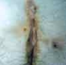 <p>This lesion had erupted on the back of an elderly man with diabetes mellitus. The inflammatory process involved contiguous follicles with pus evident...