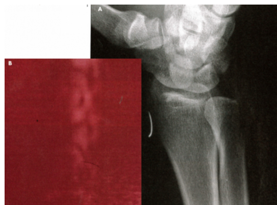 A 40-year-old man presented to the emergency department with moderate to severe pain over the left lateral wrist. Earlier in the day, an iron rod had accidentally struck his...