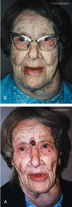 <div id="article-content-body"><p>Concerned about a lesion between her eyes, a 91-year-old woman sought medical evaluation (A). She had not seen a physician for 23 years. Dr Roy T....