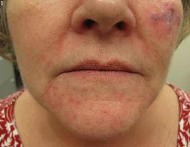 A 56-year old woman presented with an asymptomatic rash on her face that began around the time she started using Colgate PreviDENT 5000 Enamel Protect, a high fluoride toothpaste prescribed by her dentist...