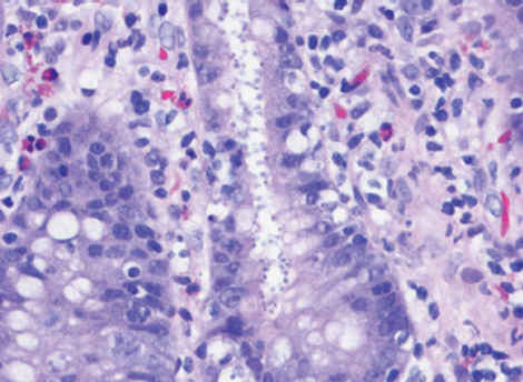 A 41-year-old Venezuelan male with history of HIV, not currently on HAART, presents to the emergency department with nausea, vomiting, diarrhea, and abdominal cramps for 2 weeks.