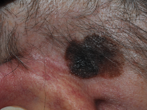 A 63-year-old male was recommended to have a pigmented lesion behind his ear checked out. It was asymptomatic and of unknown duration; in fact, he was unaware of it.