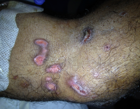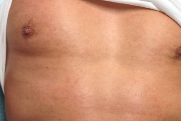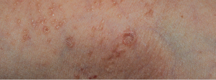 A 42-year-old female presented with a 6-week history of asymptomatic lesions on both antecubital fossa. She is otherwise healthy and takes no medications. She has had no change in her menstrual history.