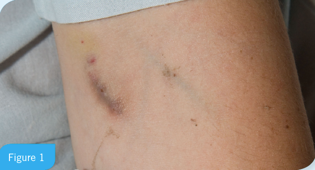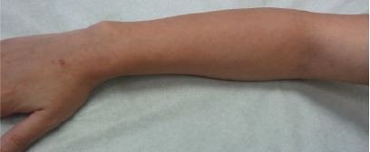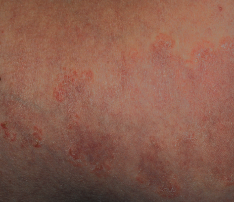 A 22-year-old woman presented to the dermatology clinic with asymptomatic erythematous patches on her right upper extremity (Figure 1) and right chest of 14 years duration.