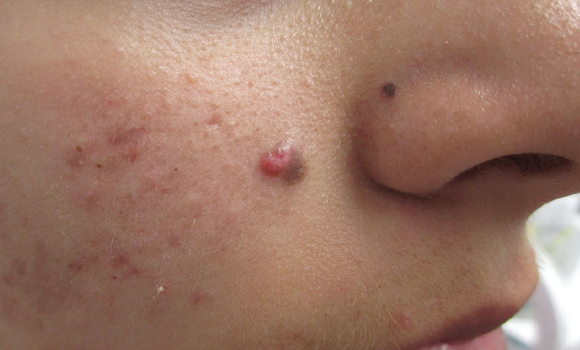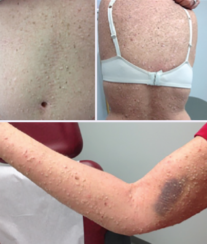 A 57-year-old white female presented with an 8-month history of a generalized eruption of hyperkeratotic, verrucous papules beginning in her left axilla with subsequent spread to her back, trunk, face, and...