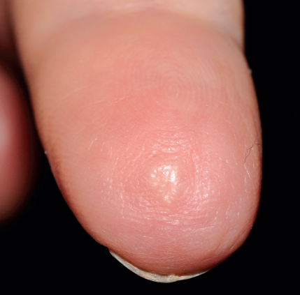 A 45-year-old female presented with a painful nodule on her finger that has been slowly growing over the last several months. There is no history of trauma or foreign body.