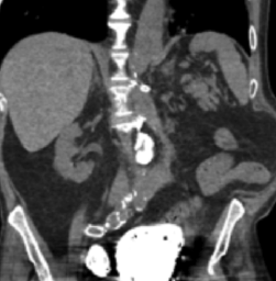 A 77-year-old male with multiple medical problems presented to the emergency department complaining of right flank pain and decrease in bowel movements.