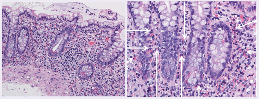 A 69-year-old white male with a past medical history significant for ulcerative colitis requiring a total colectomy presented with complaints of progressive postprandial abdominal pain over the past 6...