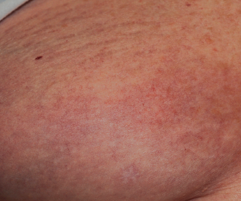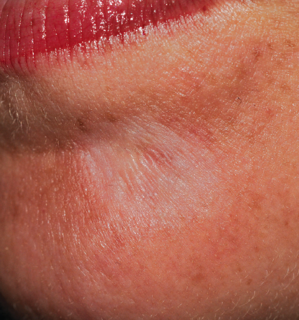 A 40-year-old female presented with a several month history of rash on her chin, which was asymptomatic. She is otherwise healthy and has no other rashes.