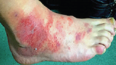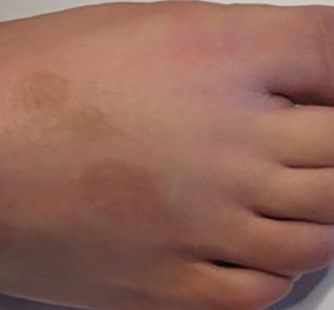 A 64-year-old female presented for evaluation of a rash on her lower back of several months’ duration that was asymptomatic. She has had long-standing low back pain.