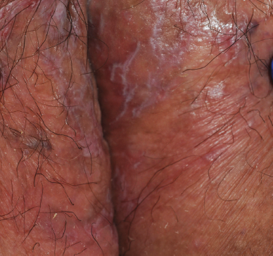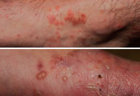 A 35-year-old man presented for evaluation of a slowly worsening itchy rash on both feet and ankles over 2 weeks this past summer. He denies any new exposure history and is otherwise healthy.