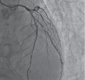 A 58-year-old man presented with a sudden onset of dyspnea at rest. He had become nonverbal and had been intubated in the field due to hypoxia, with an oxygen saturation of 58% on room air.