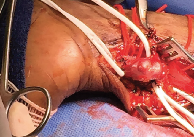 A 32-year-old man had received a diagnosis of type 2 diabetes mellitus 6 months before he presented with pain and swelling of his right lower extremity.