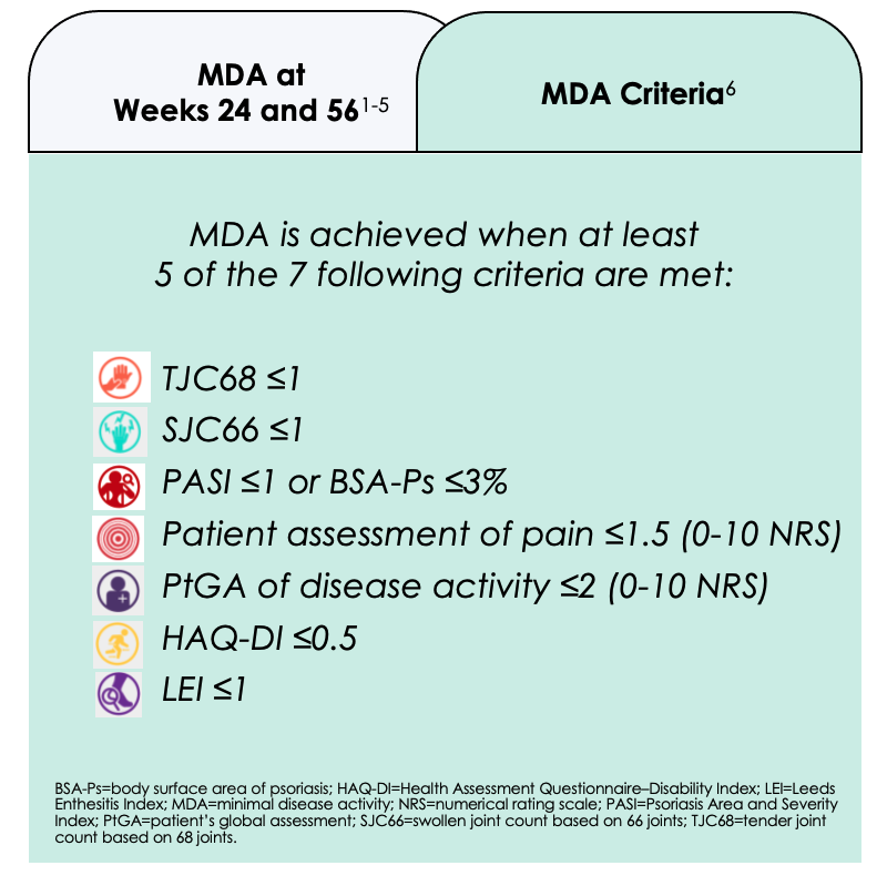1. Coates LC, et al. Arthritis Rheumatol. 2016;68(5):1060-1071.
